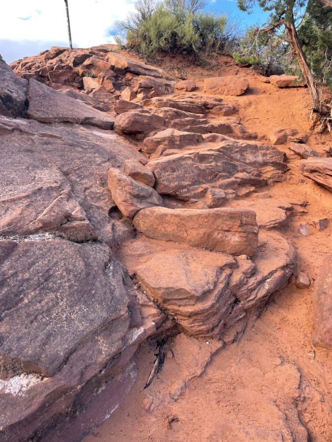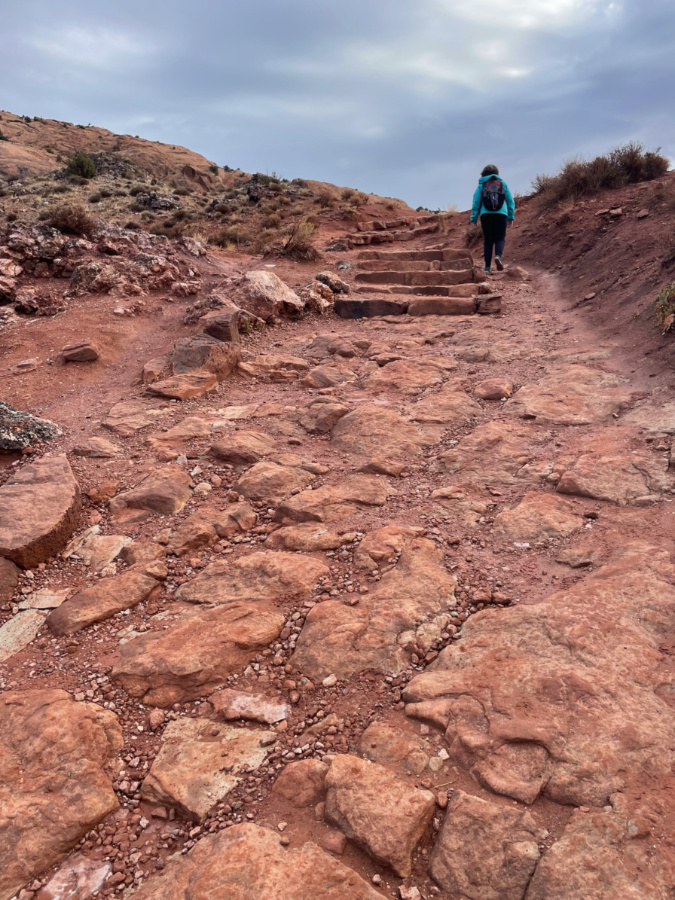 The trail is 1.5 miles long (one-way) and mostly up. |